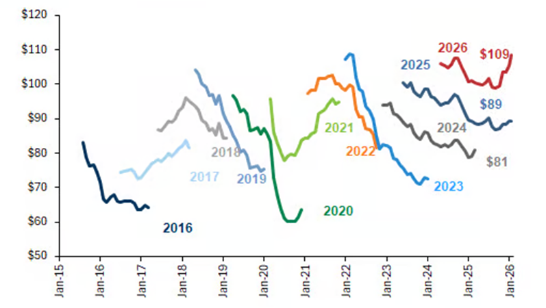Gold briefly surged above US$5,000 per ounce in the last week of January as investors sought safe-haven assets amid geopolitical tensions and concerns over central bank independence. Similarly, silver climbed past US$100 per ounce for the first time before briefly approaching US$120.